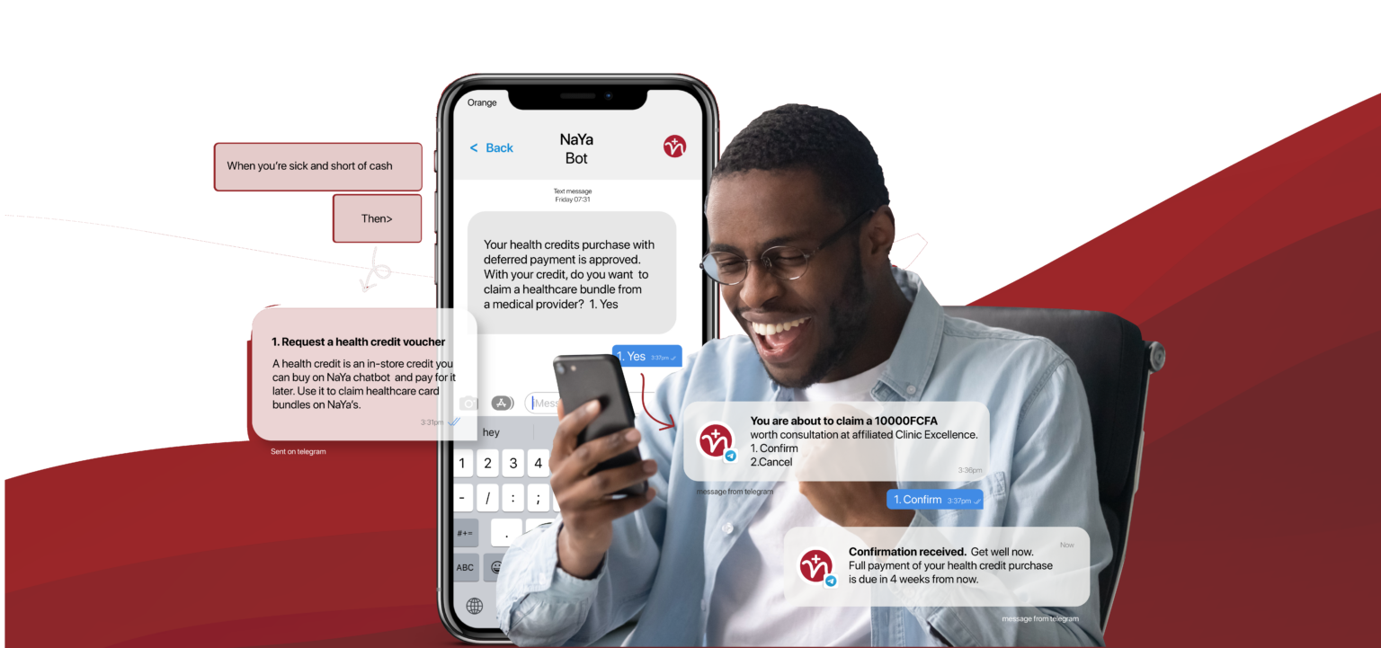 Access to healthcare made simple in Africa! On your phone, log on to NaYa’s chatbot on Telegram @nayahealthbot and set up healthcare that protects you, your friends and family anytime.